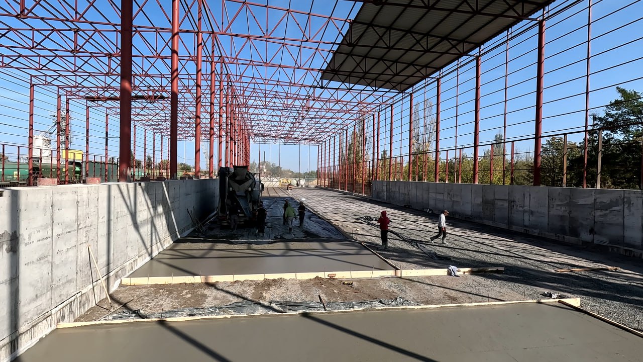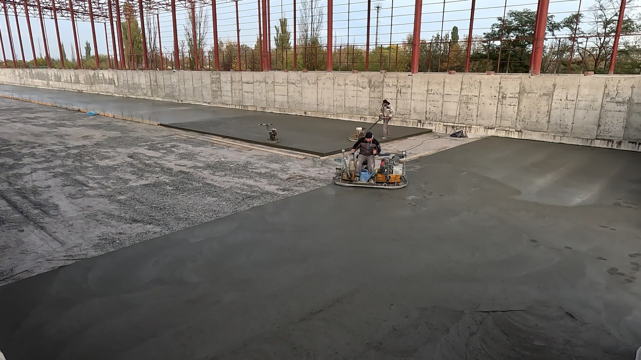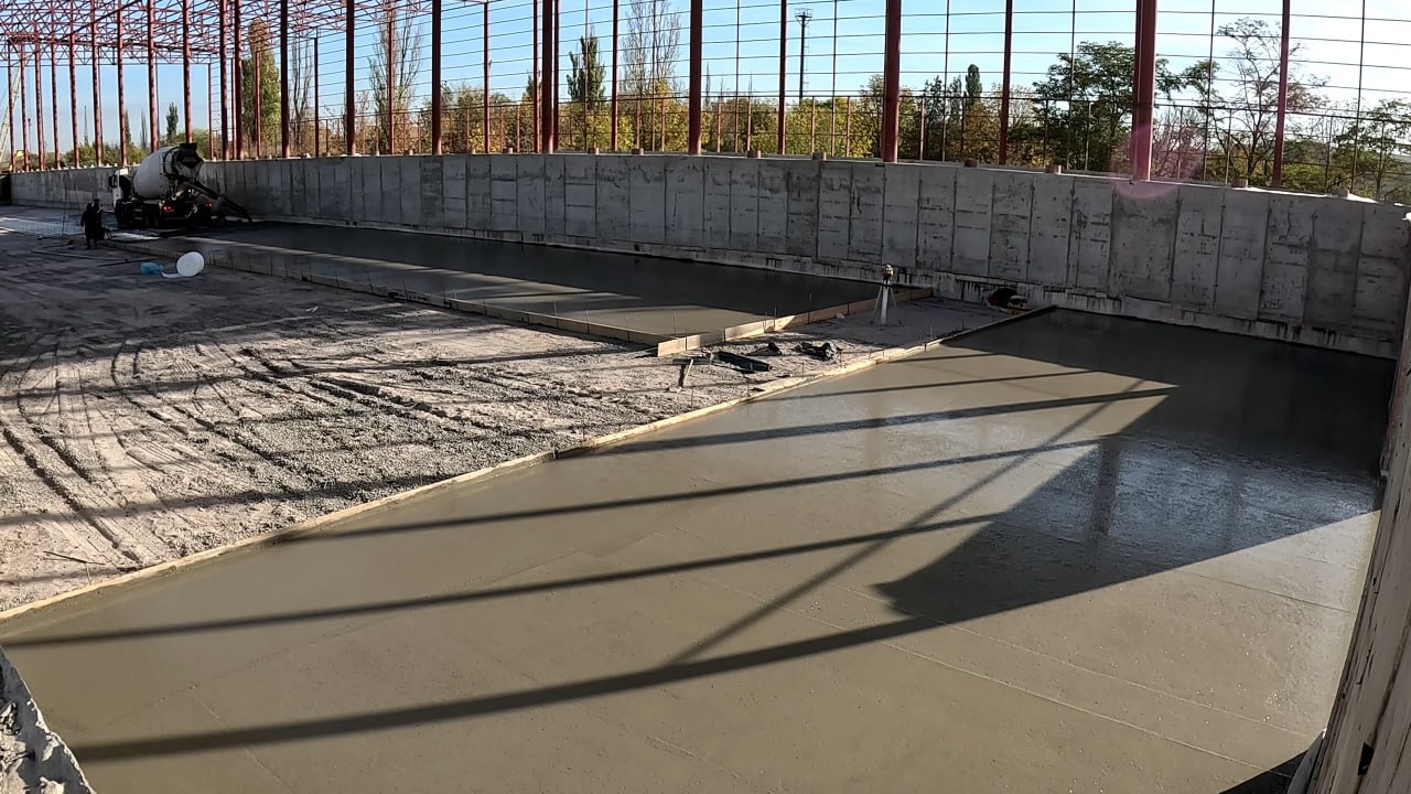 Завершено процес заливки бетонної основи для зберігання у складі зерна.