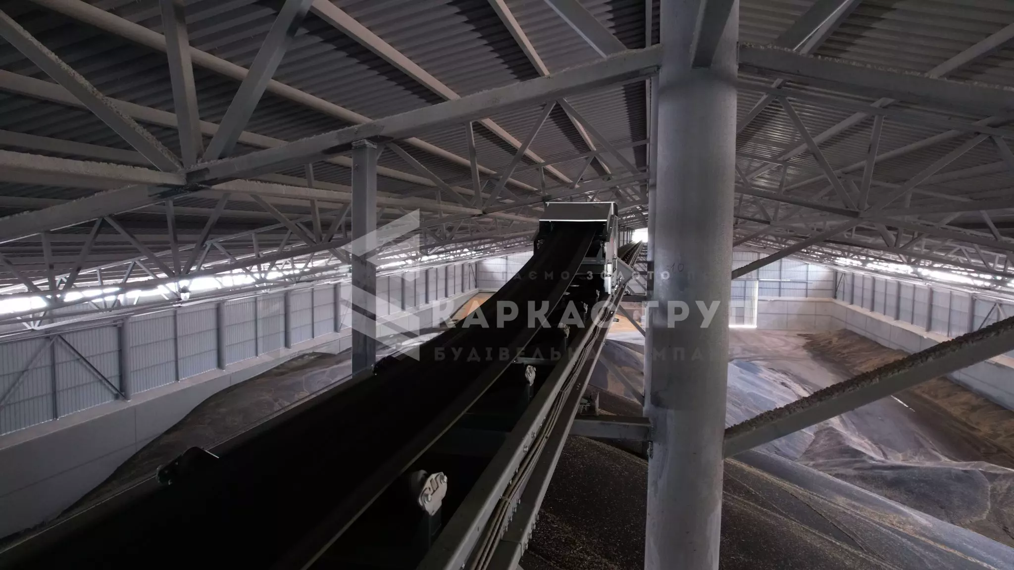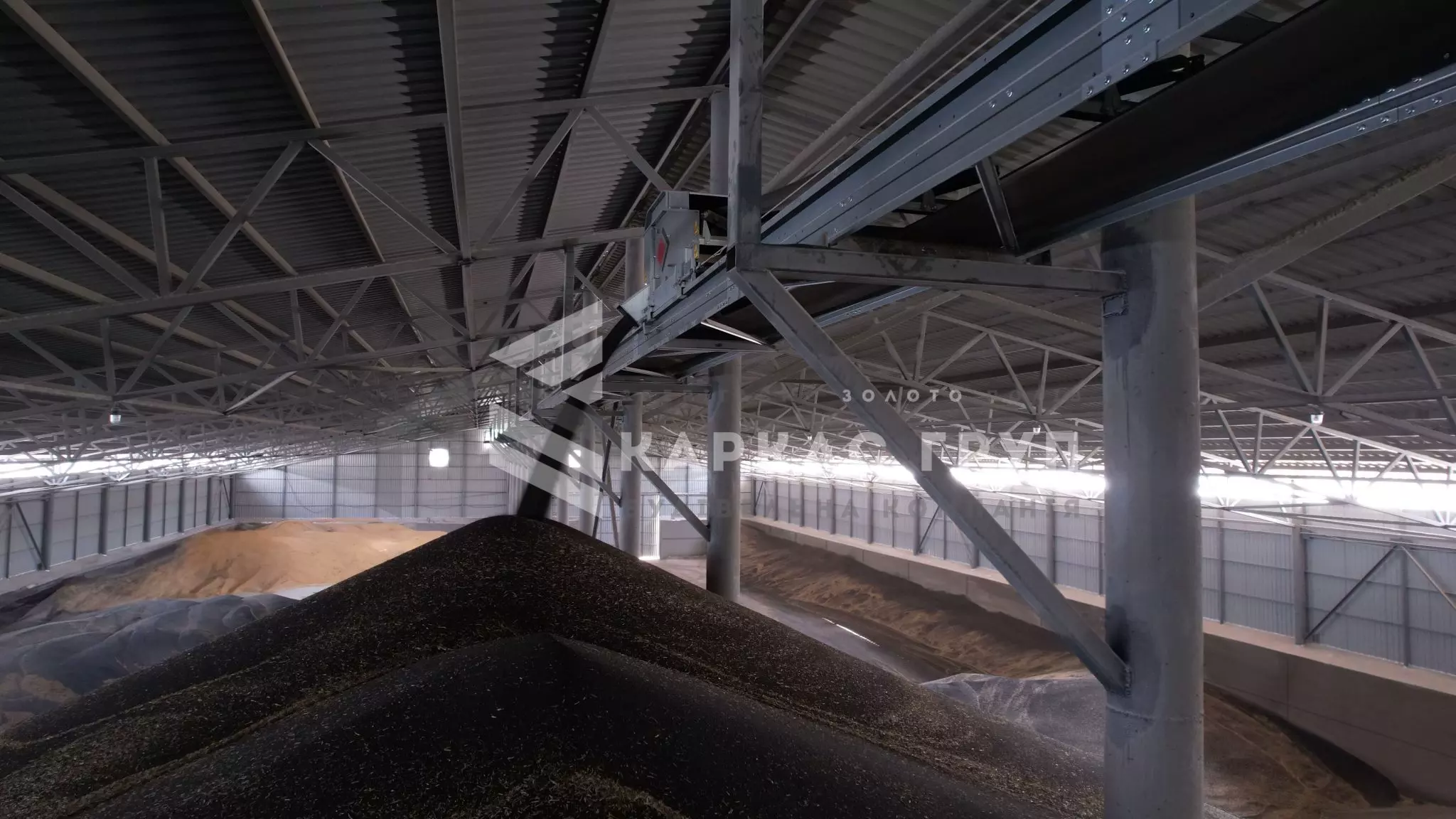 Продукція з завальної ями транспортується у зерносушарку від компанії Bonfanti, після цього норія підіймає зерно на стрічковий конвеєр і відбувається завантаження приміщення.