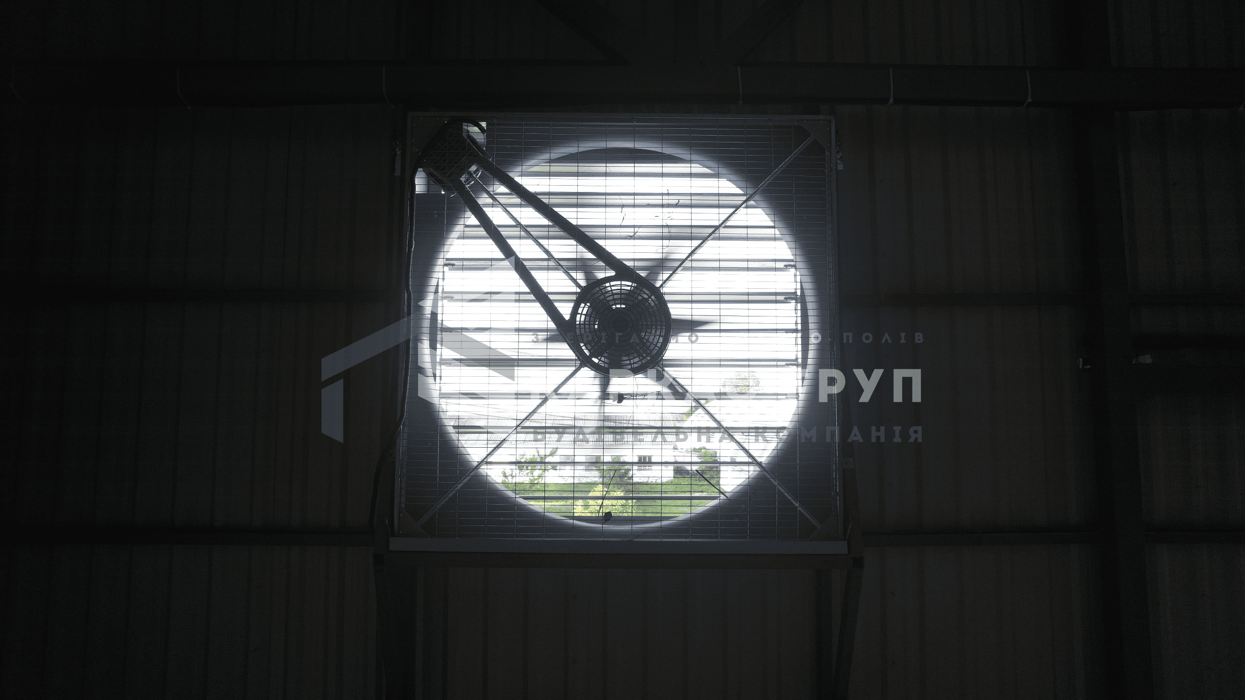 Було встановлено у кожному фронтоні витяжні осьові вентилятори для відведення забрудненого повітря, а у підлозі кожні 3м змонтовано вентиляційні канали для «продування» зернової маси. За межами складу встановлюється промисловий вентилятор, який нагнітає повітря до складу. У господарства є можливість вентилювати як все приміщення в цілому, так і окремі його зони, де знаходиться зерно.