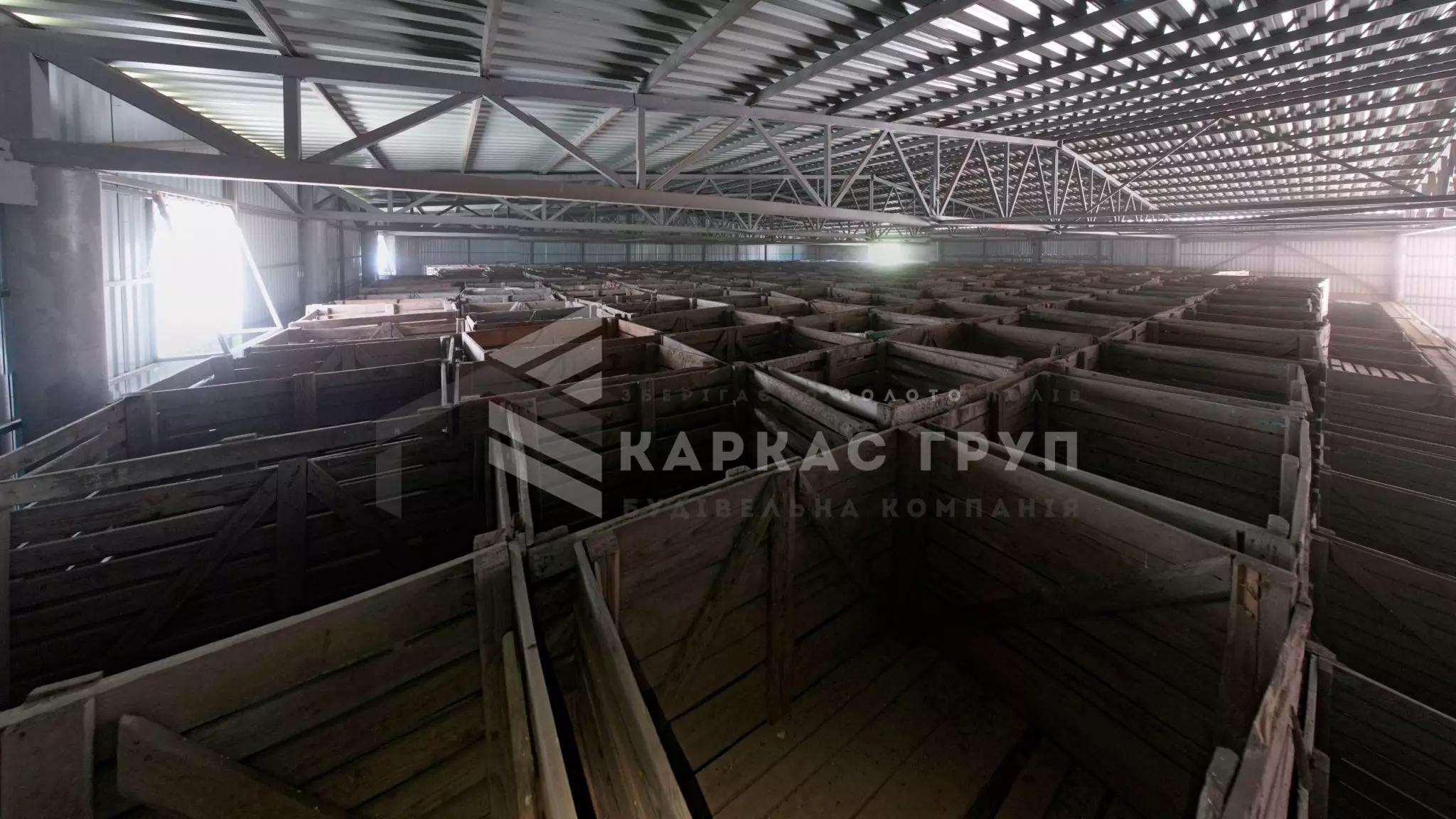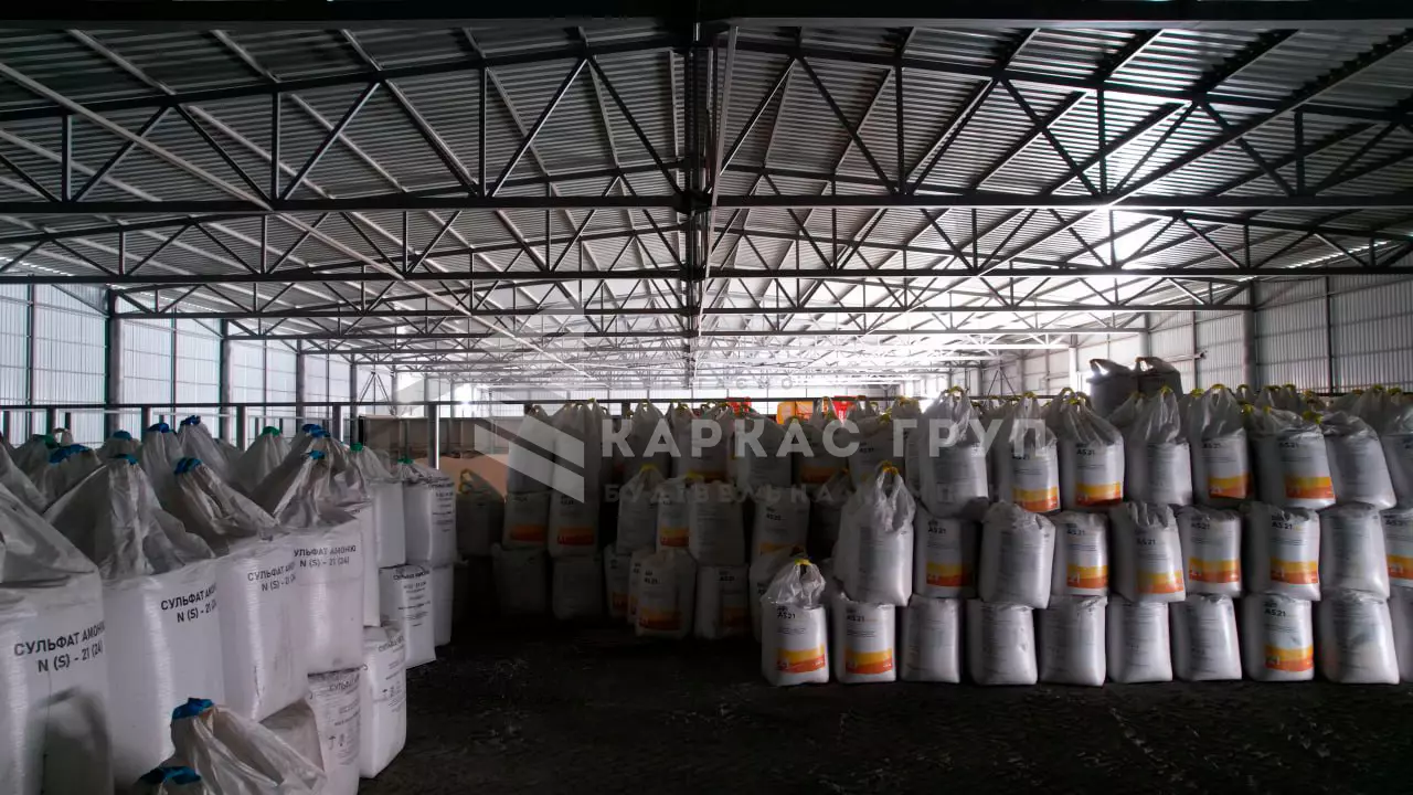Команда ТОВ «Каркас Груп» завершила будівництво складу за індивідуальним проєктом: склад поділено на 3 секції, кожна з яких використовується за різним призначенням – зберігання насипної продукції, зберігання техніки та зберігання готової продукції у біг-бегах.