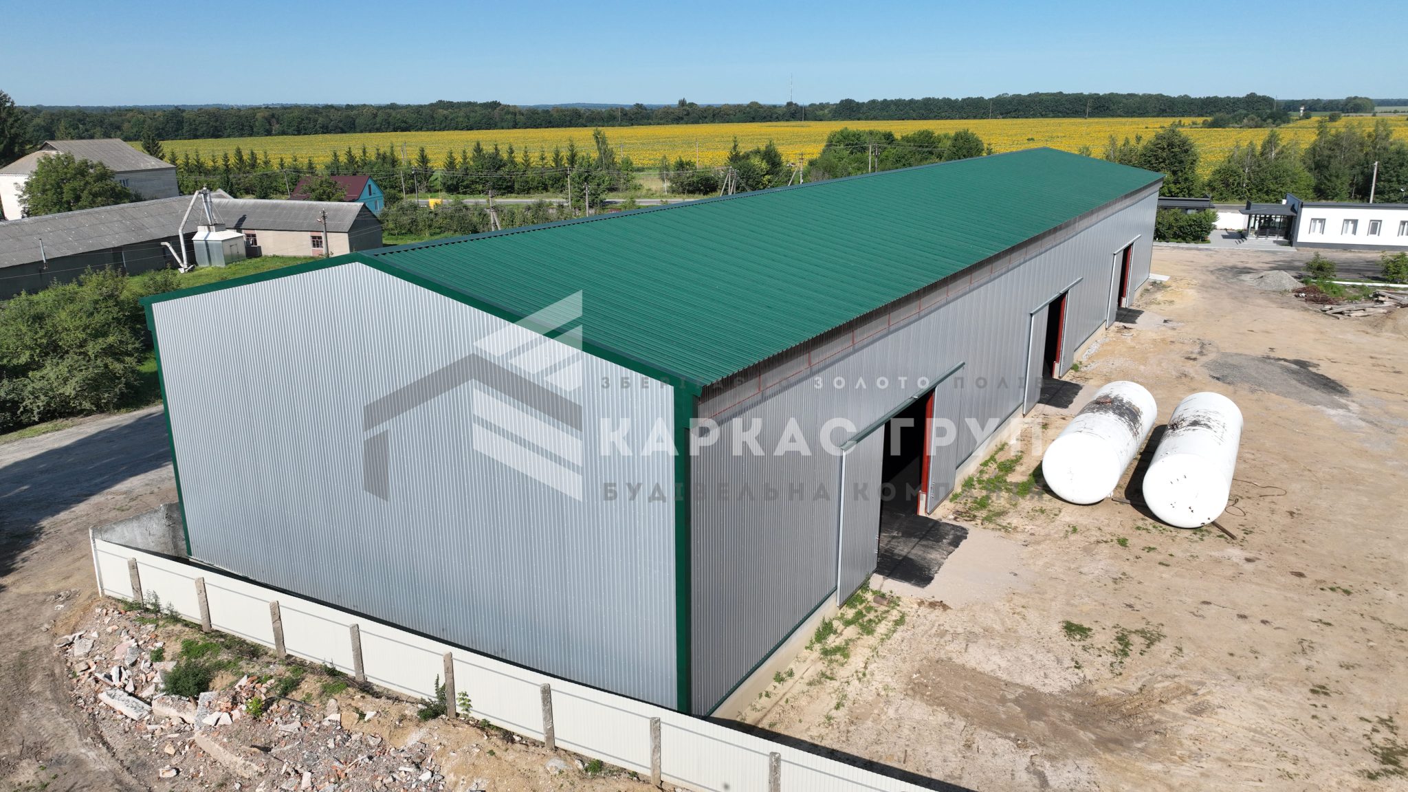 Конструкція складського приміщення передбачає троє воріт з одного боку будівлі, що забезпечує швидке завантаження та розвантаження продукції.