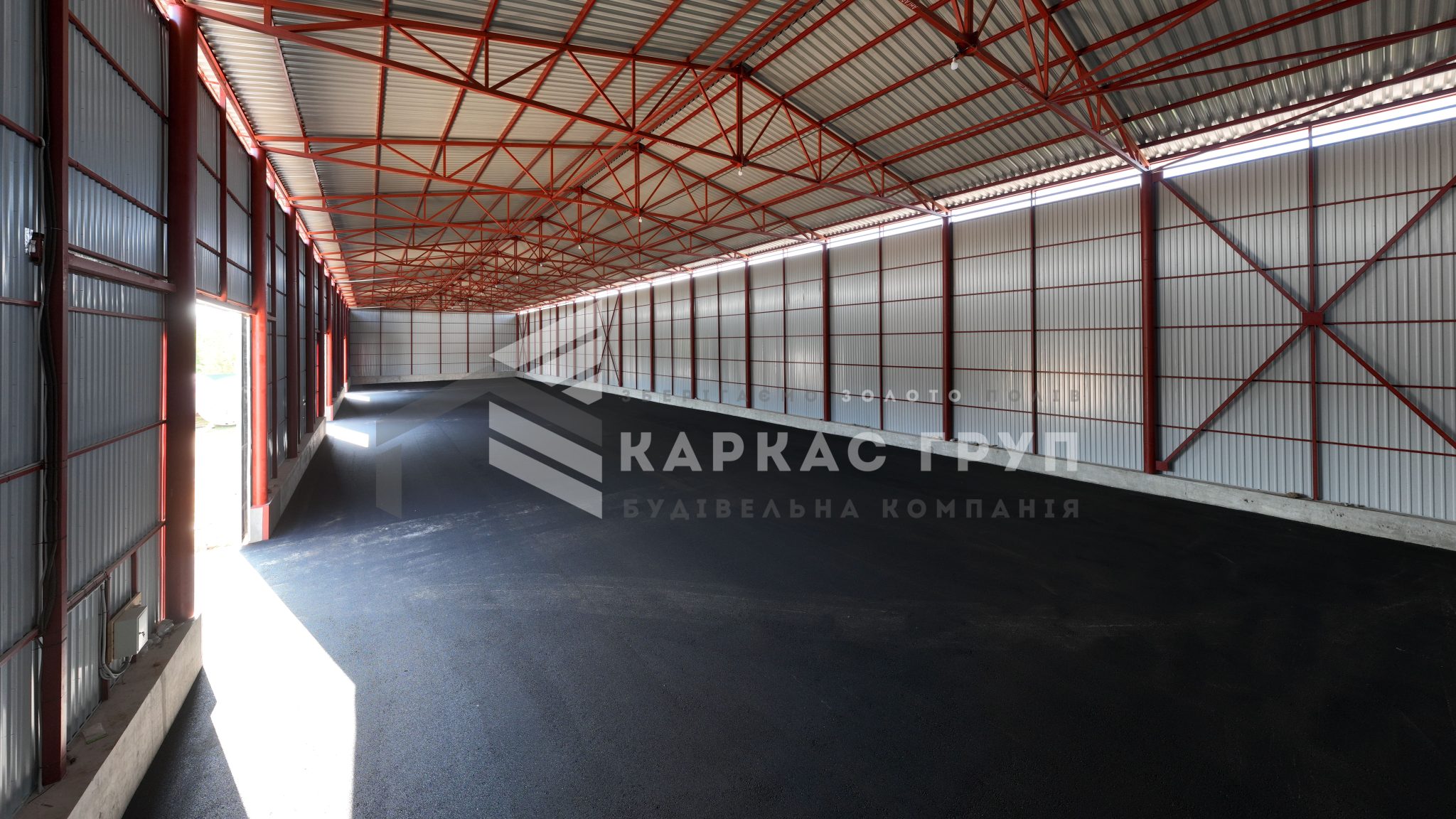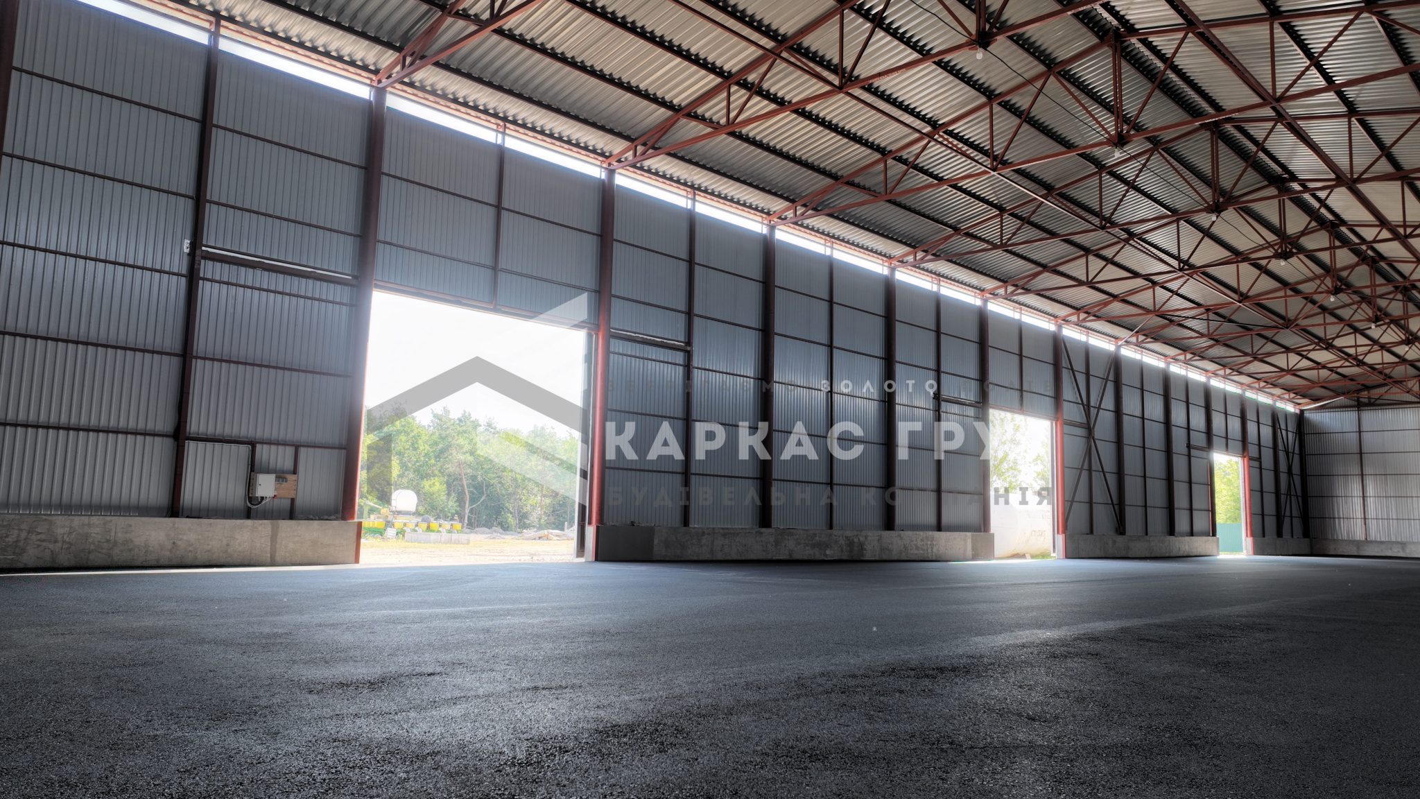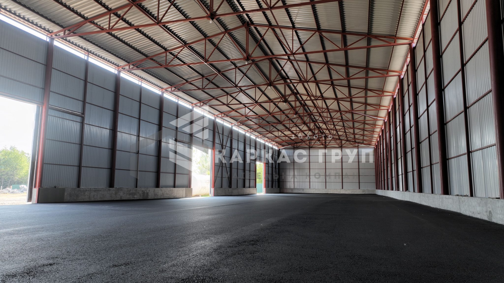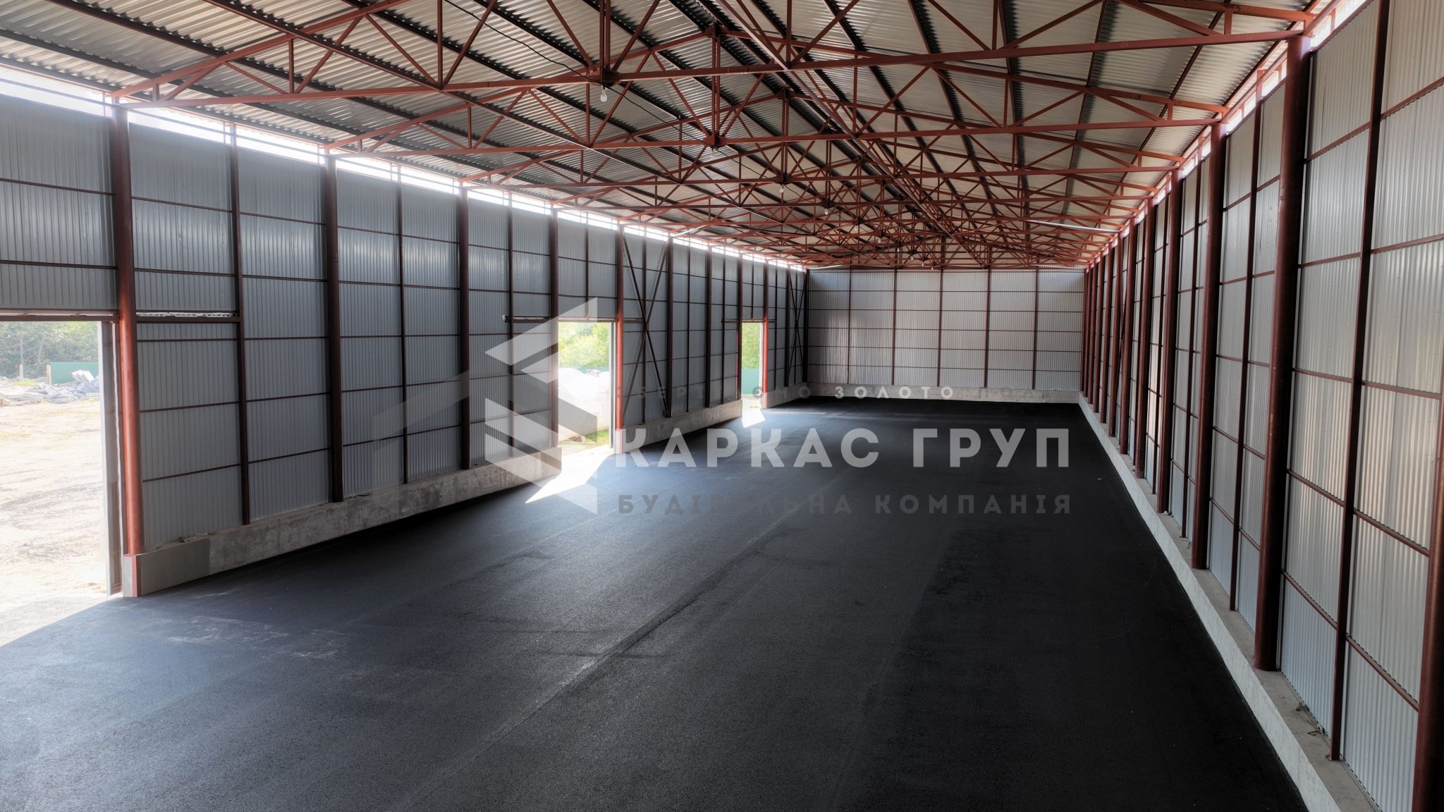 У будівництві було використано покрівельний профнастил 0,5 мм та стіновий 0,45 мм, що забезпечує надійність конструкції та її довговічність. В якості покриття ділянки замовник обрав асфальтну підлогу.