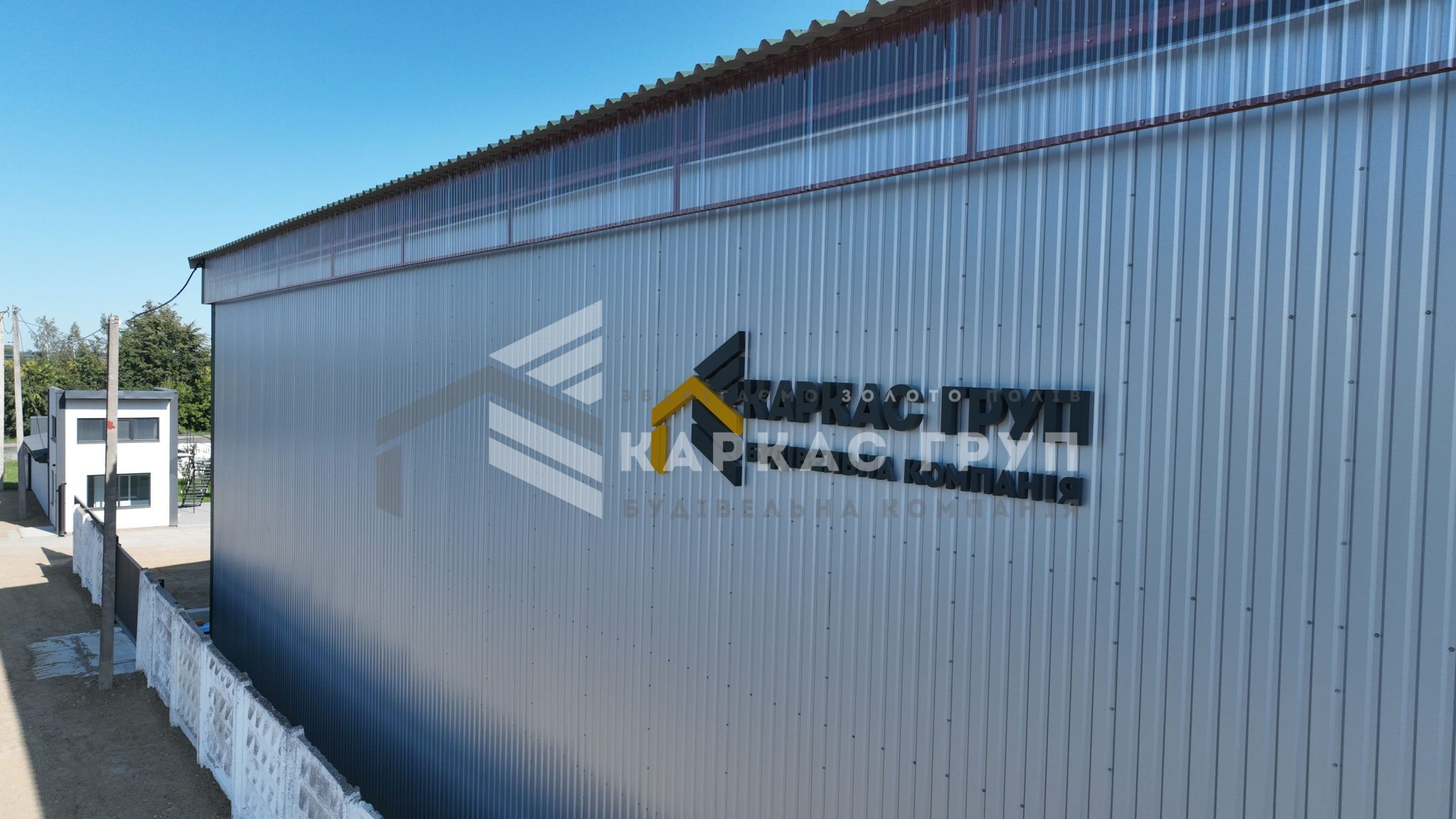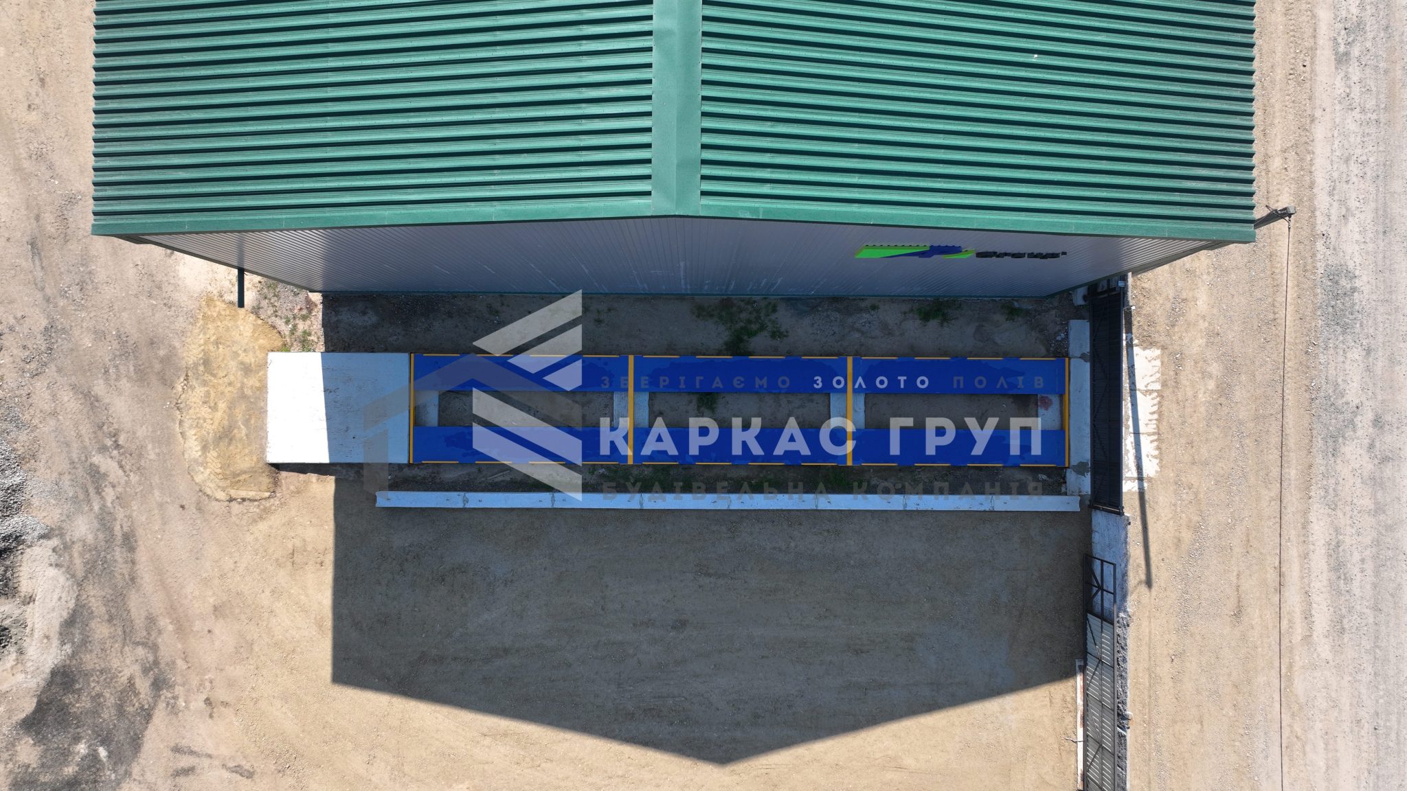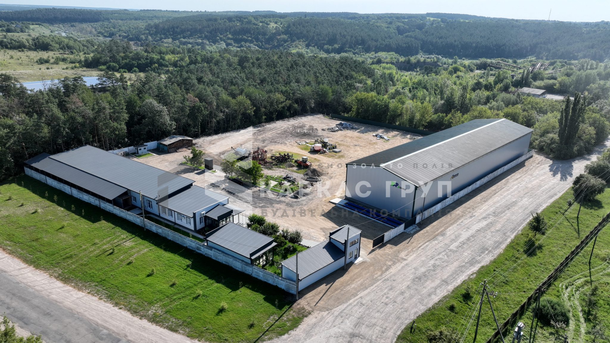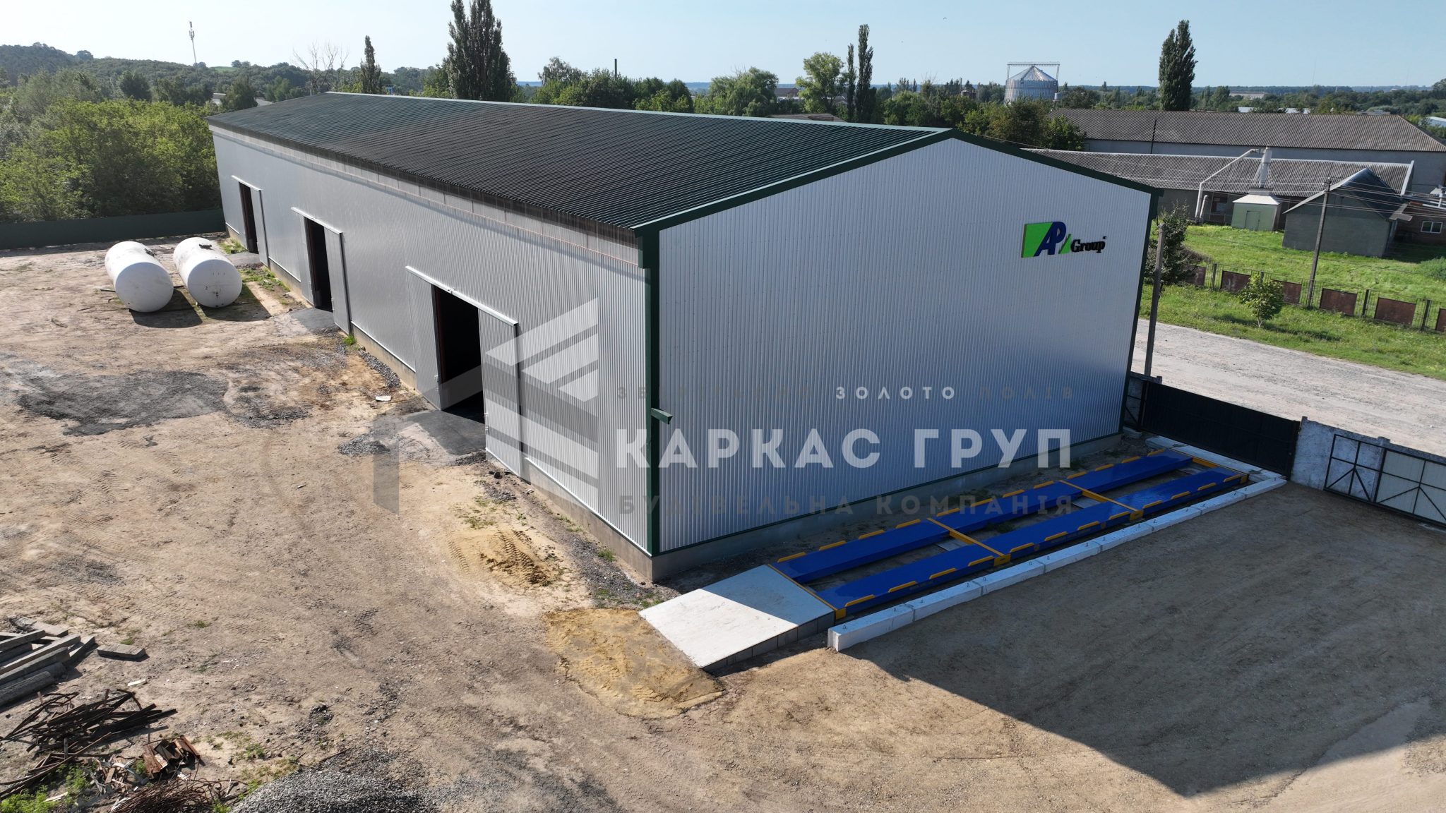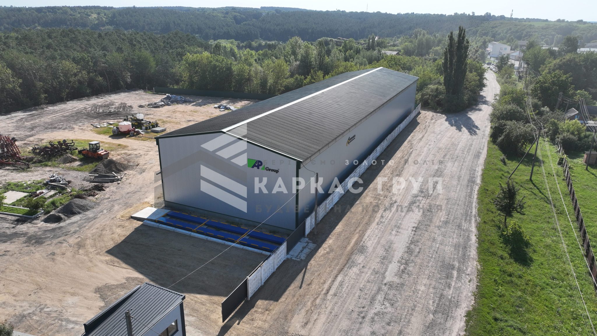 У будівництві було використано покрівельний профнастил 0,5 мм та стіновий 0,45 мм, що забезпечує надійність конструкції та її довговічність. В якості покриття ділянки замовник обрав асфальтну підлогу.