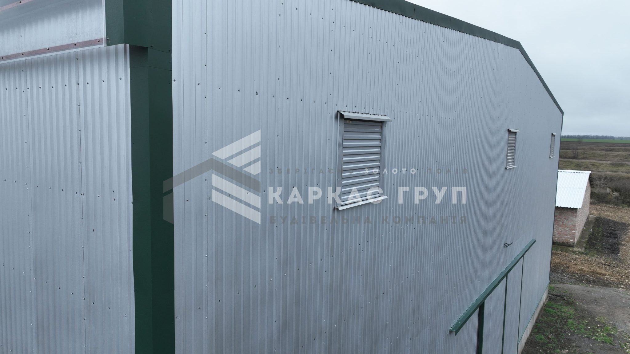 За запитом замовника врахували всі побажання з вентиляції складу та встановили світлоаераційне вікно та решітки у фронтоні для запобігання псуванню продукції.
