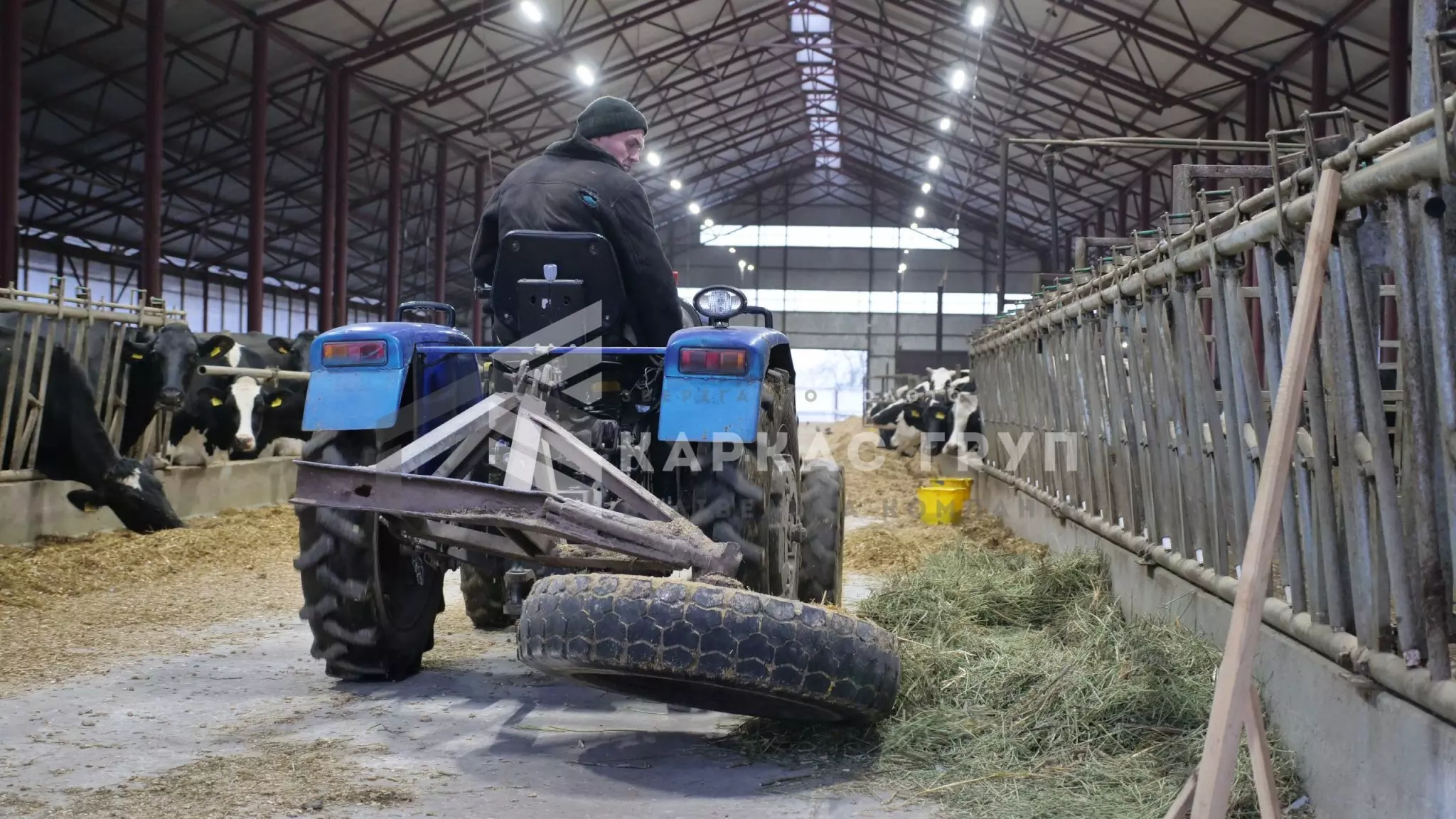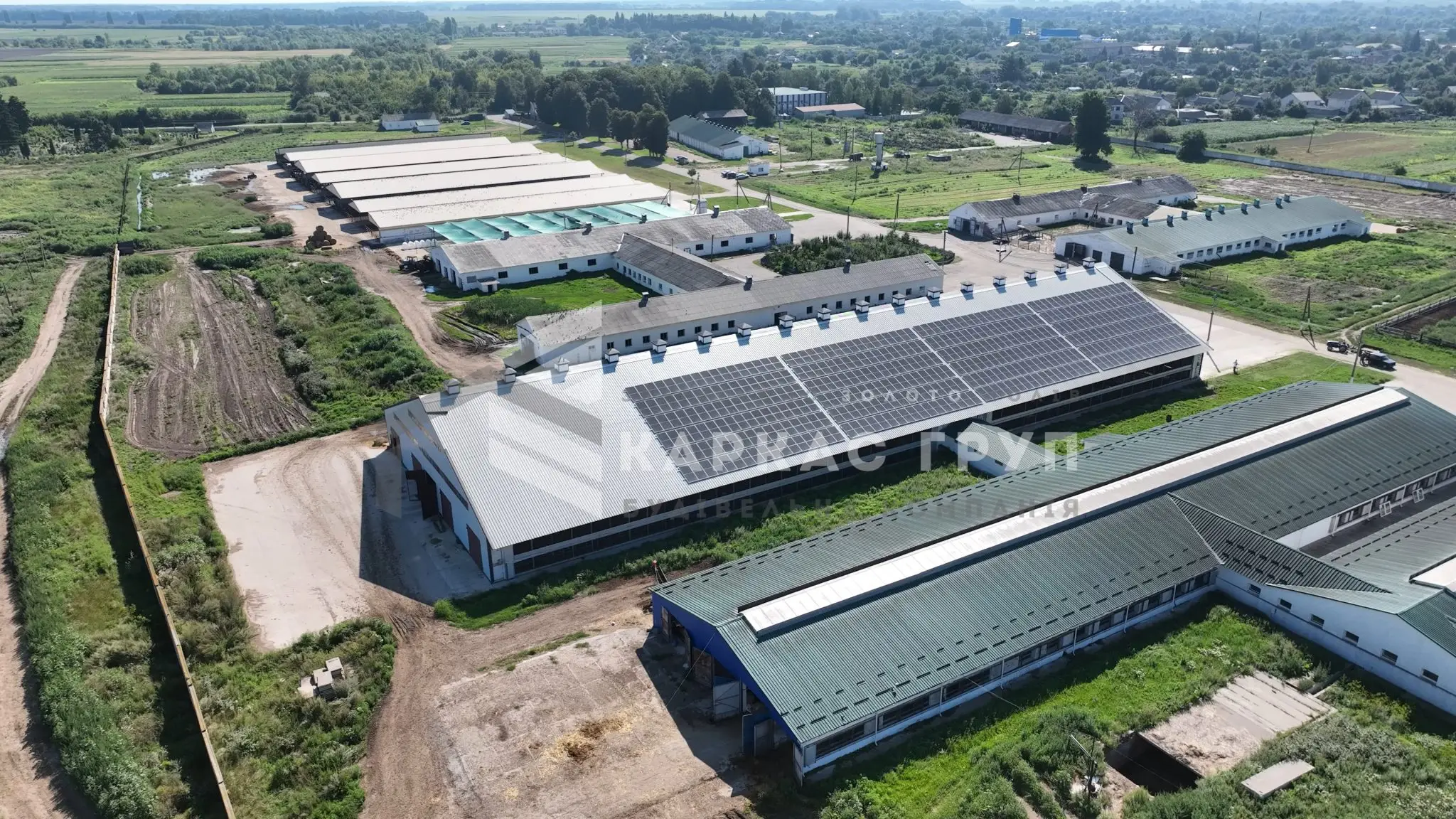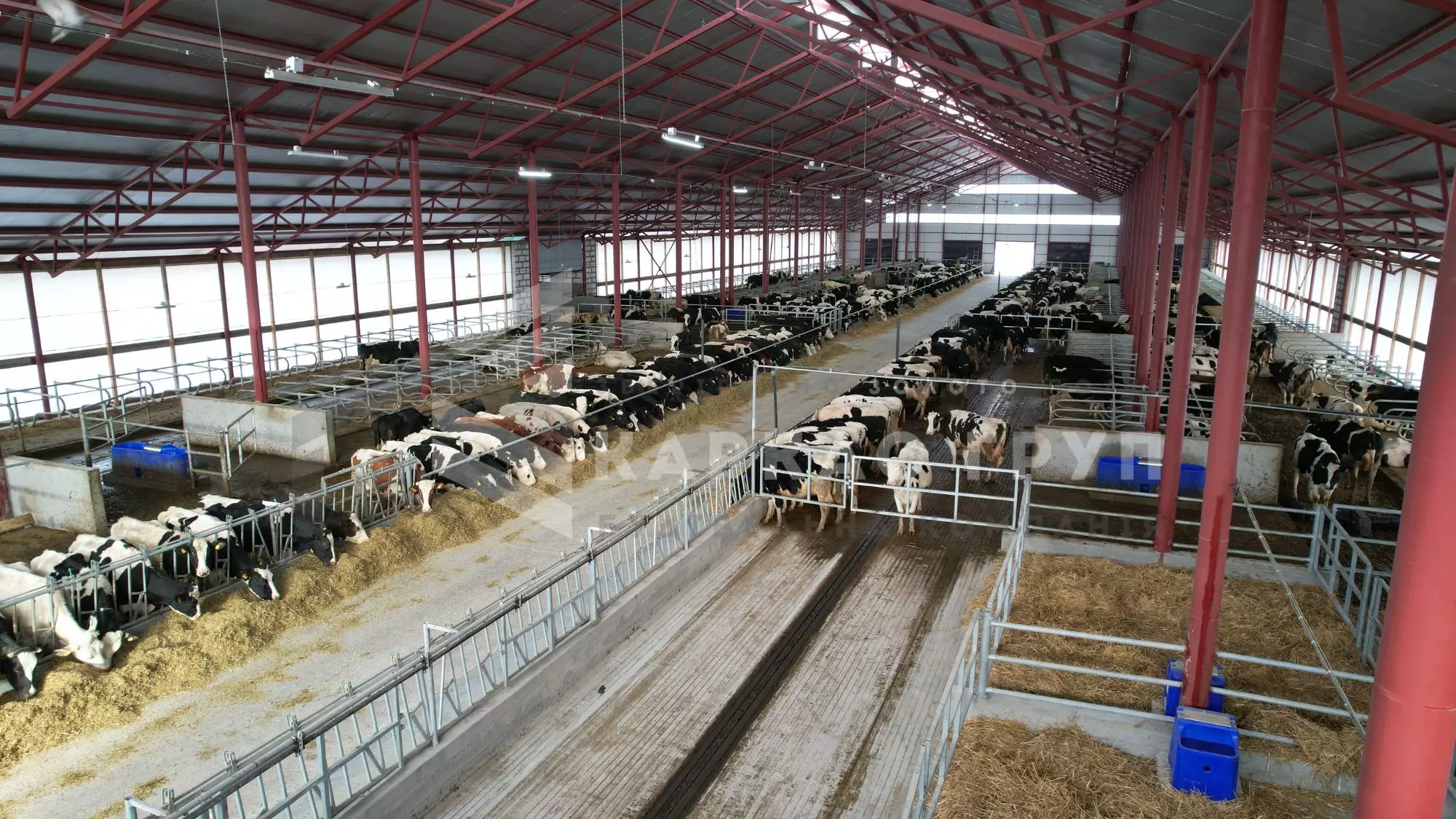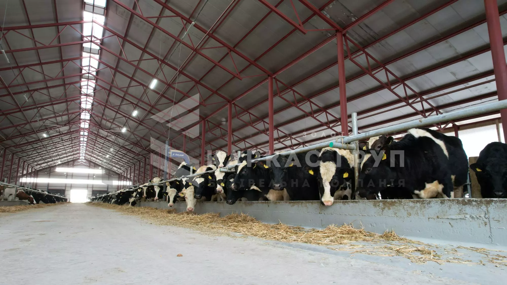 Корівник побудовано з металевого каркасу та оброблено від корозії. Це дозволило швидко і з оптимальними витратами звести будівлю. За рахунок того, що кормовий стіл знаходиться посередині було встановлено дві додаткові опорні колони, за рахунок яких вдалось зменшити металомісткість ферм.