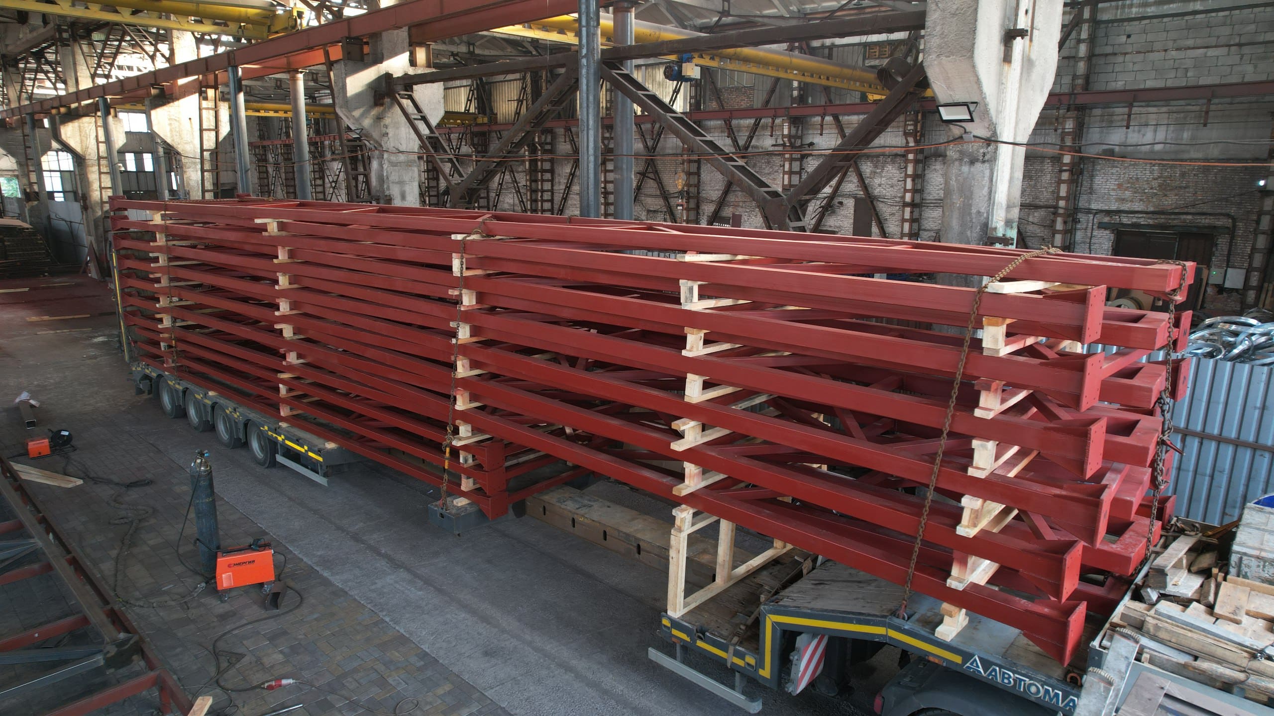 Ферми з паралельними поясами було виготовлено “Каркас Груп” для ангару під зерно з двома навісними транспортерами. Для міцності конструкції та зменшення металомісткості ферм на об’єкті передбачаються додаткові опори всередині складу.