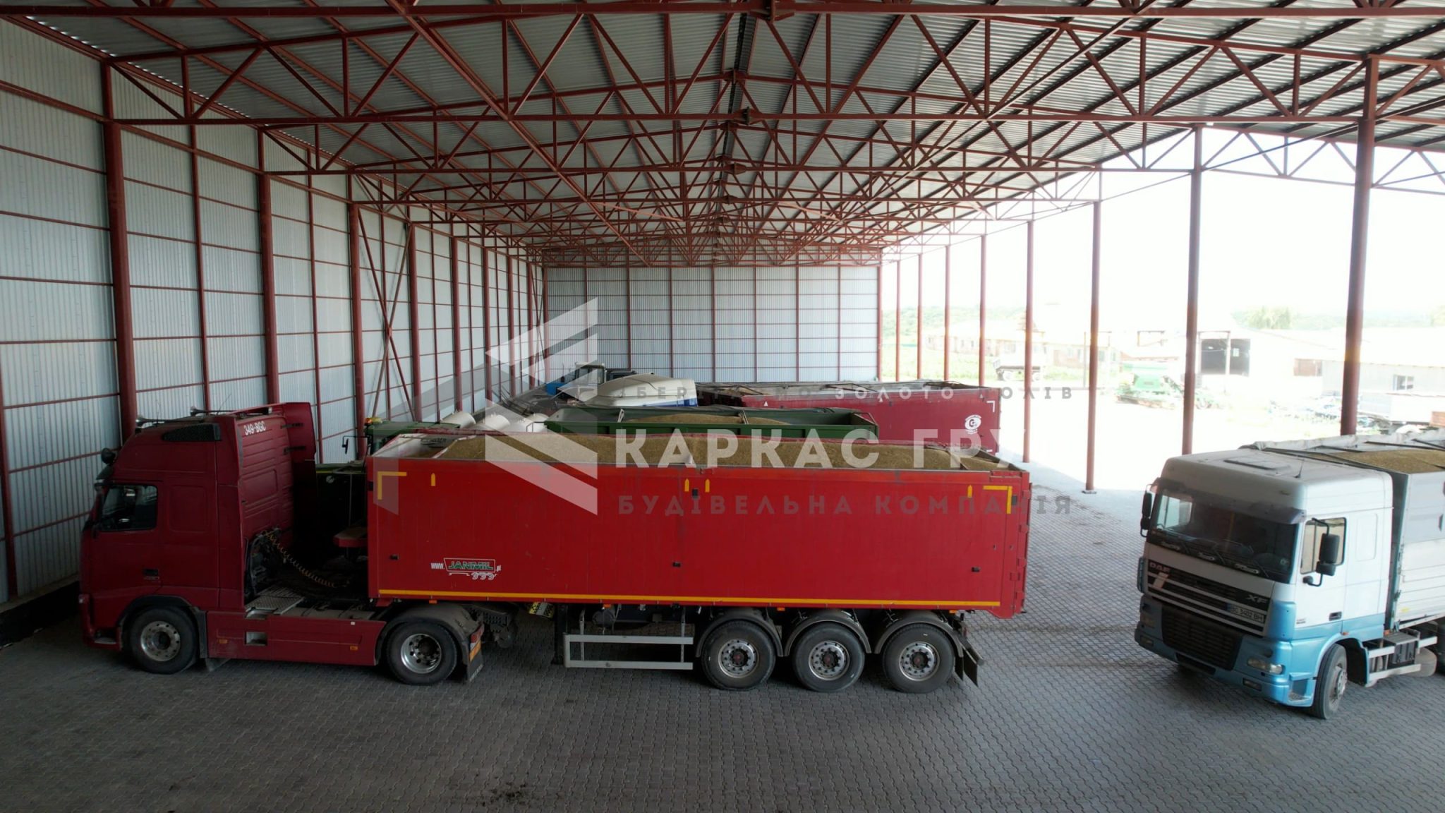 Розрахунок здійснювався під конкретні потреби замовника та з урахуванням всіх аспектів ефективності будівництва. На ділянці розташований зерносушильний комплекс, до якого навіс було подовжено для зручності операцій з продукцією.
