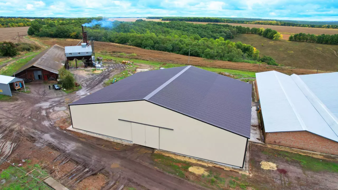 Для цього проєкту виготовлено ферми з запроєктованим сніговим та вітровим навантаженням в 140 кг/м². Ферми виготовили на власному виробництві та доставили на ділянку замовнику фурами логістичної компанії-партнера.