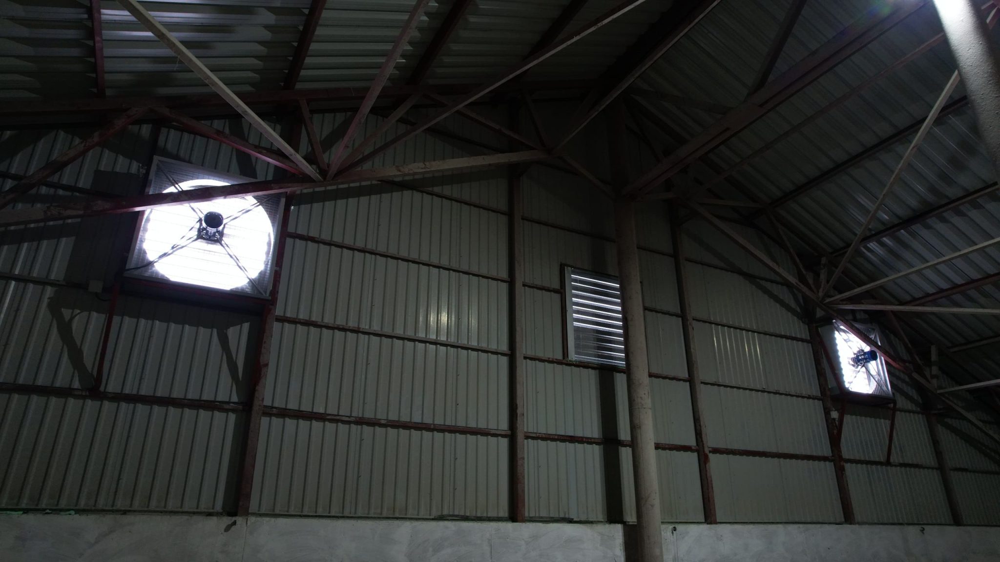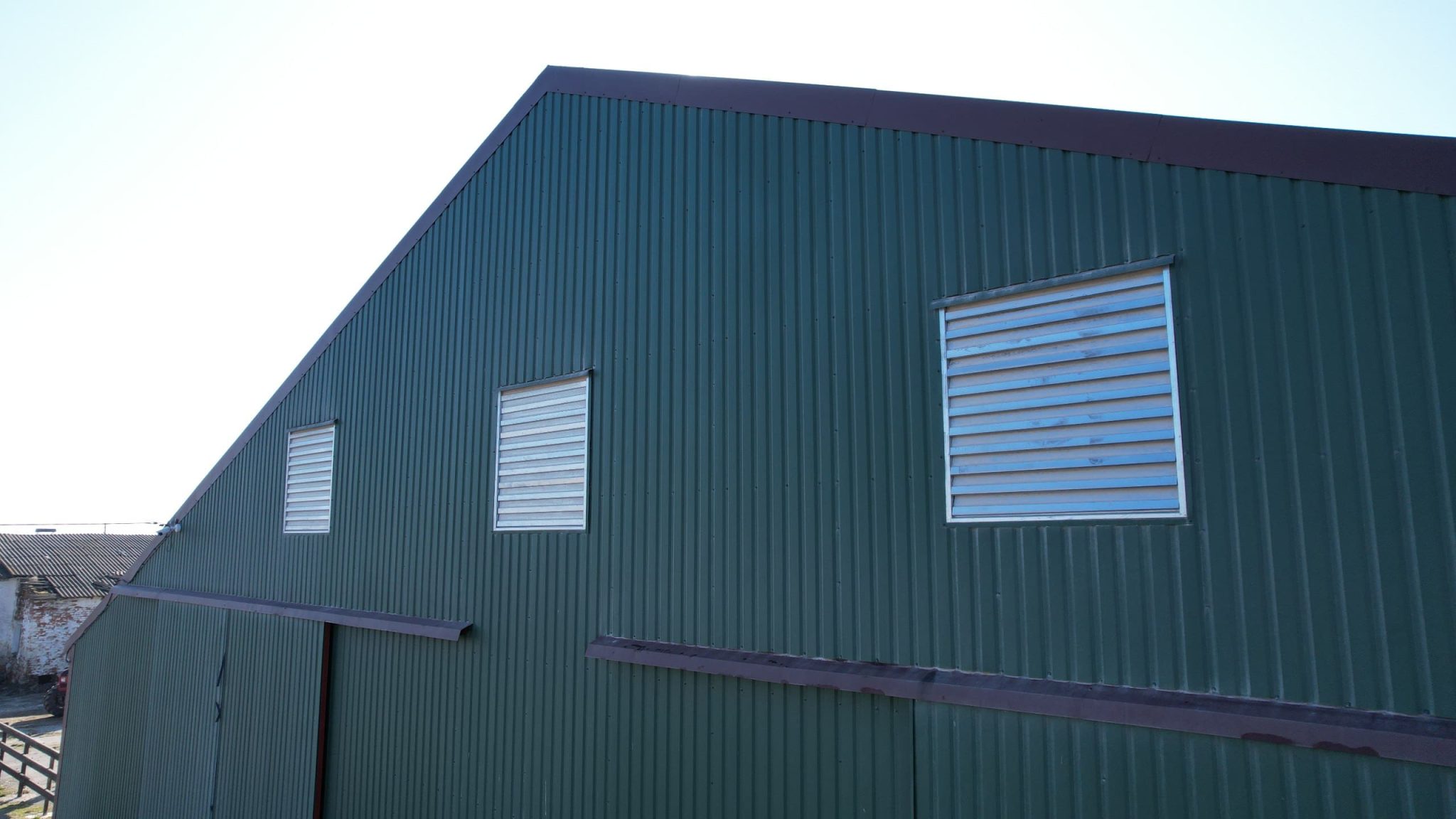 Даний проєкт цікавий тим, що замовник попередньо встановив у обох фронтонах вентиляційні решітки стороннього виробника. Після року експлуатації ангару стикнувся з тим, що скупчується волога на покрівлі та не комфортно через пил працювати персоналу. Було прийнято рішення організувати приточно-витяжну систему за рахунок осьових вентиляторів.