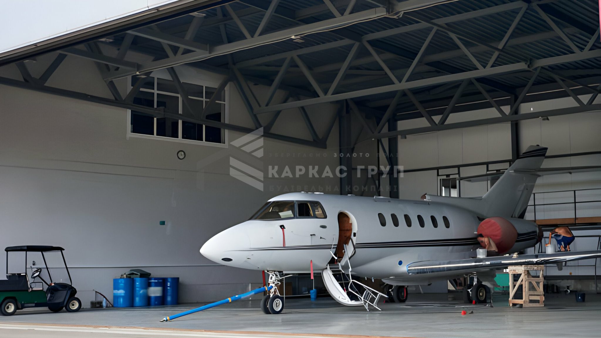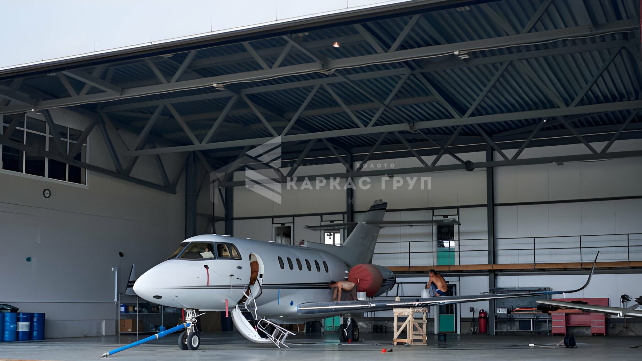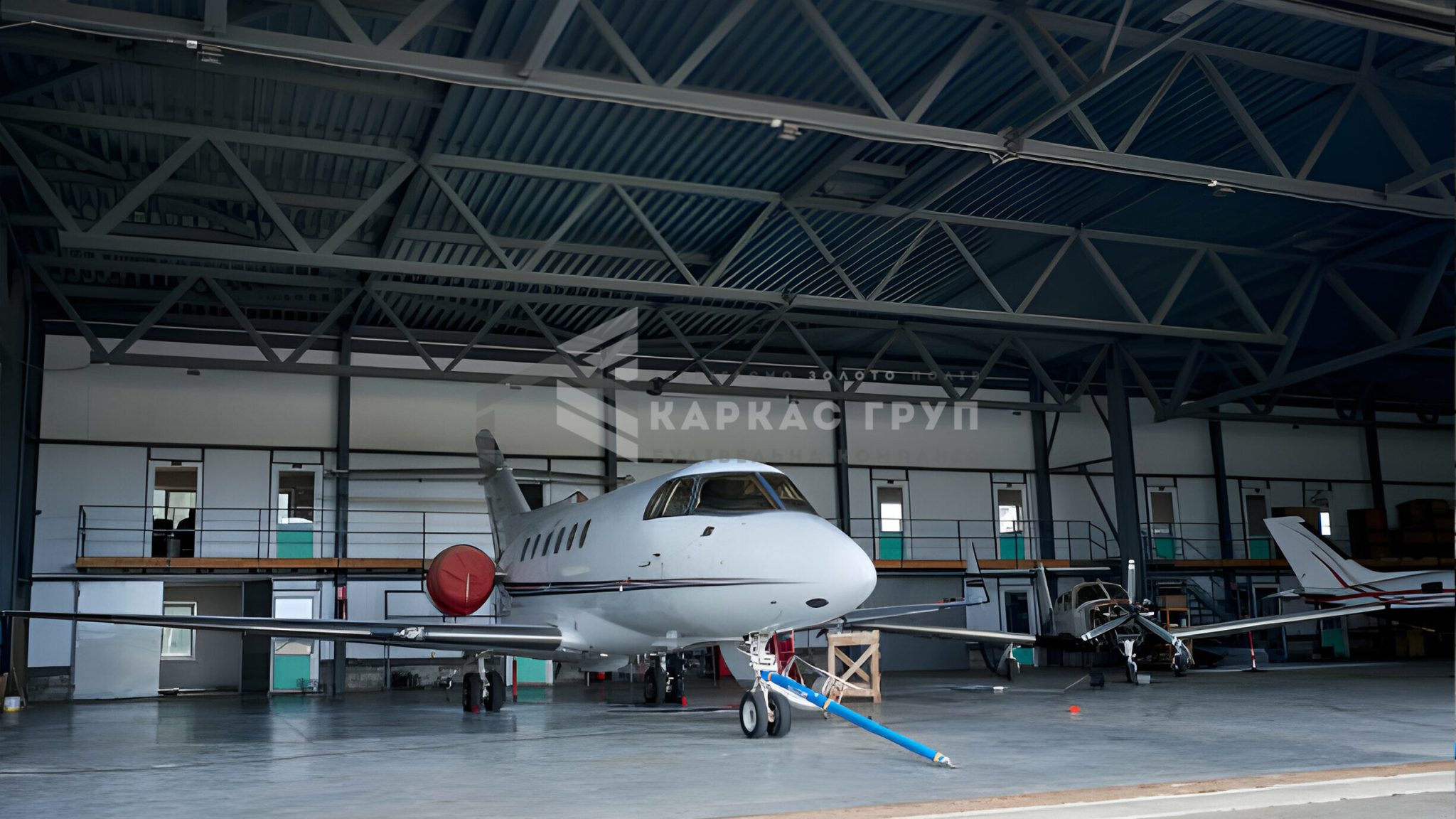 Компания ООО "Каркас Групп" завершила строительство ангара для хранения собственных самолетов предприятия. Были учтены все пожелания и спроектирована конструкция для удобного маневрирования, обслуживания и ремонта транспорта. Ангар имеет двое откатных теплых ворот по габаритным размерам самолетов (размаху крыльев, высоте хвоста).
