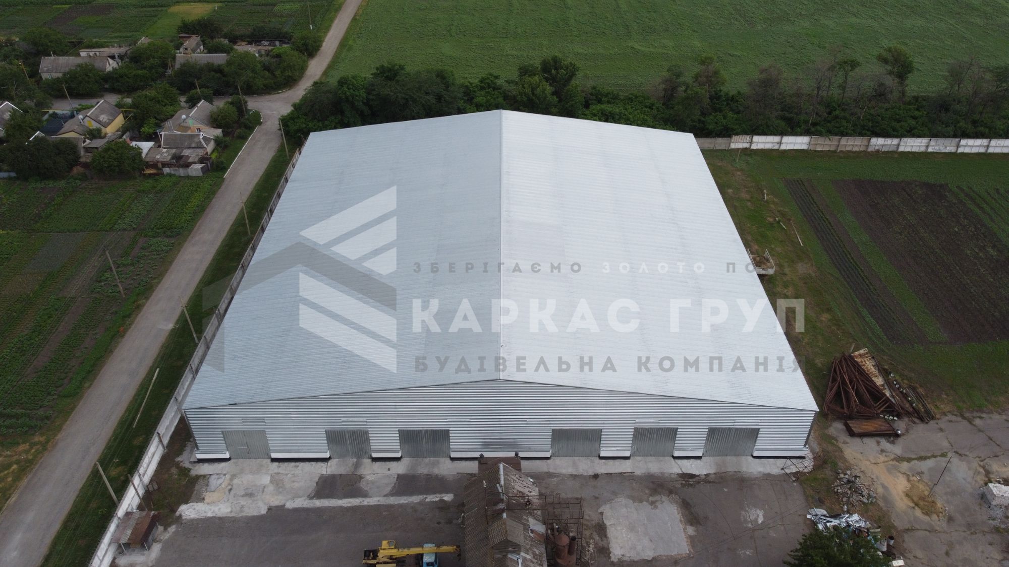Строительная компания ООО “Каркас Групп” выполнила комплекс работ по проектированию, изготовлению каркаса и строительству ангара для зерна