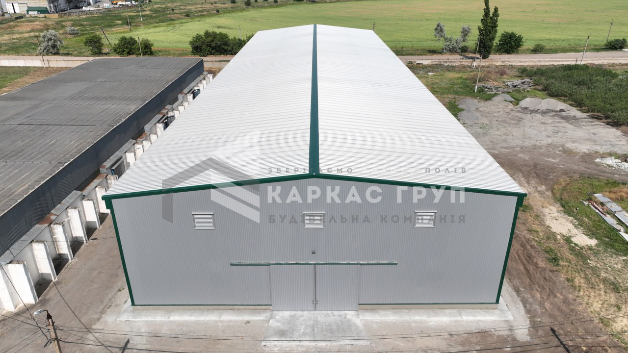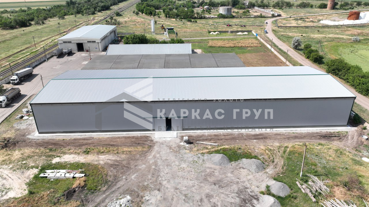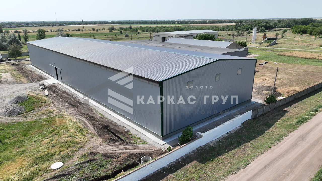 ООО "Каркас Групп" реализует поэтапное строительство складского комплекса в Николаевской области. Проект предполагает возведение трех одинаковых складов. Первая очередь уже введена в эксплуатацию.