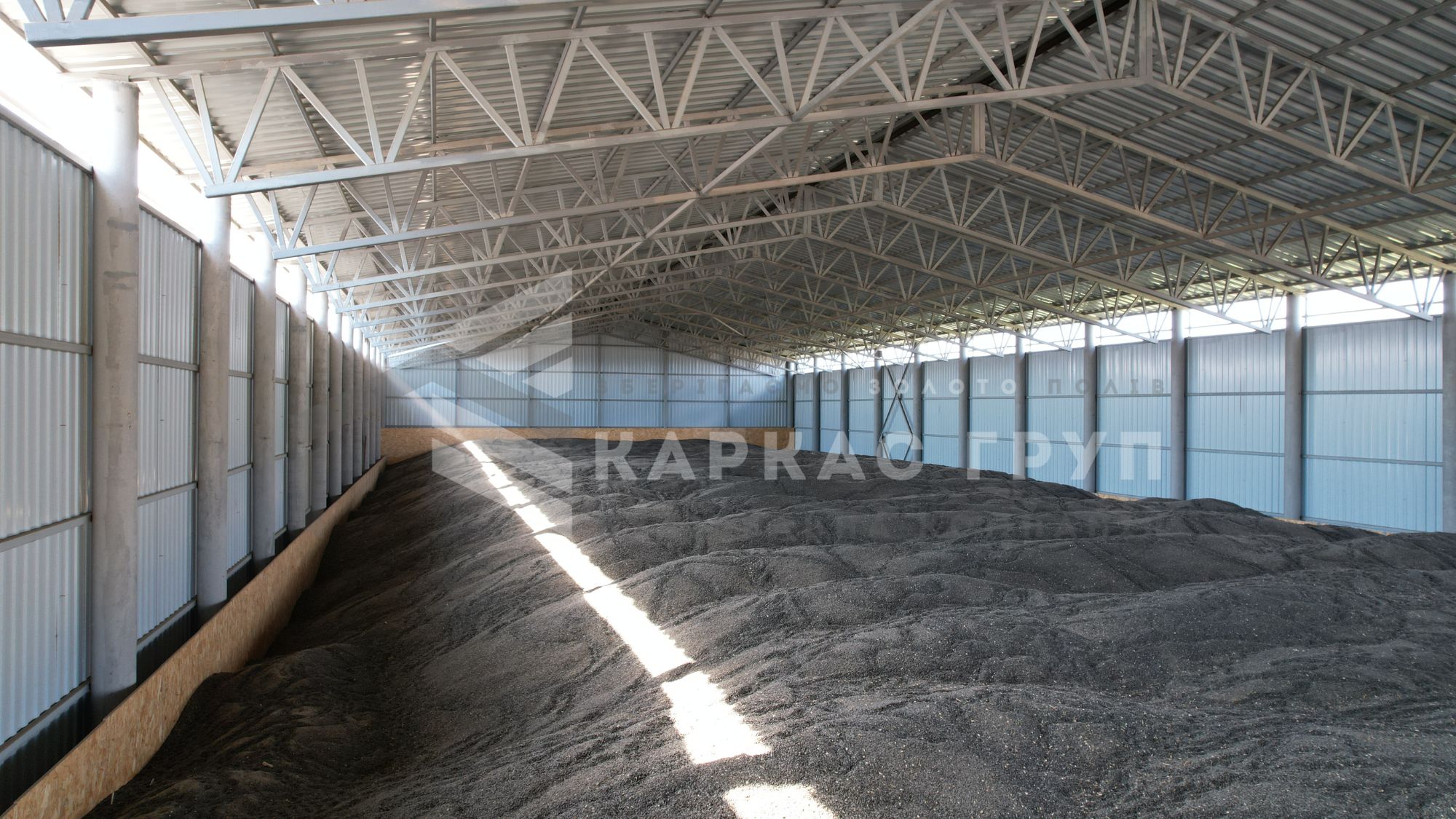 Завершен проект по строительству ангара для зерна вместимостью 2000т подсолнечника при условиях ограниченного участка.