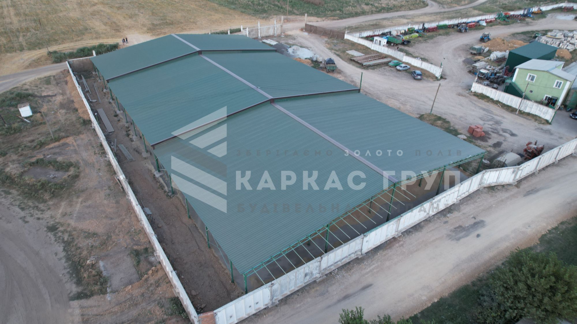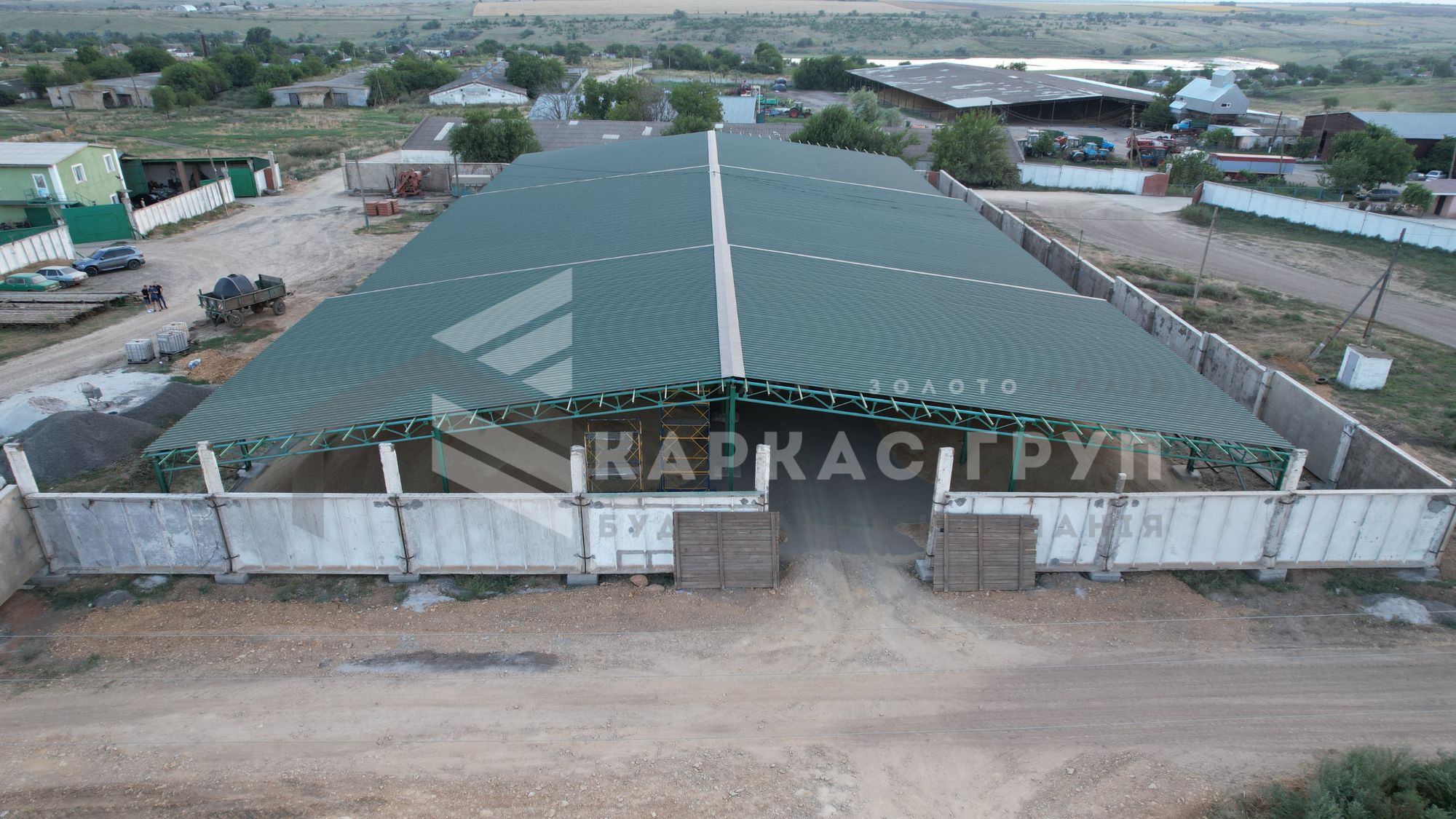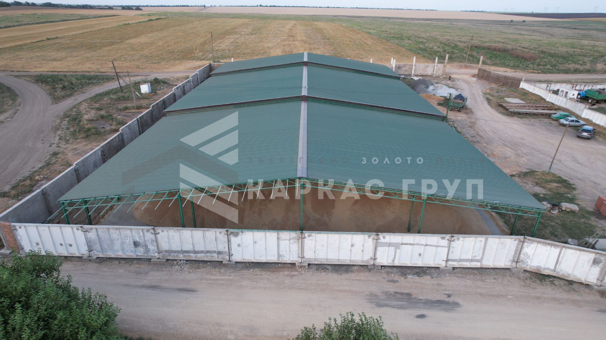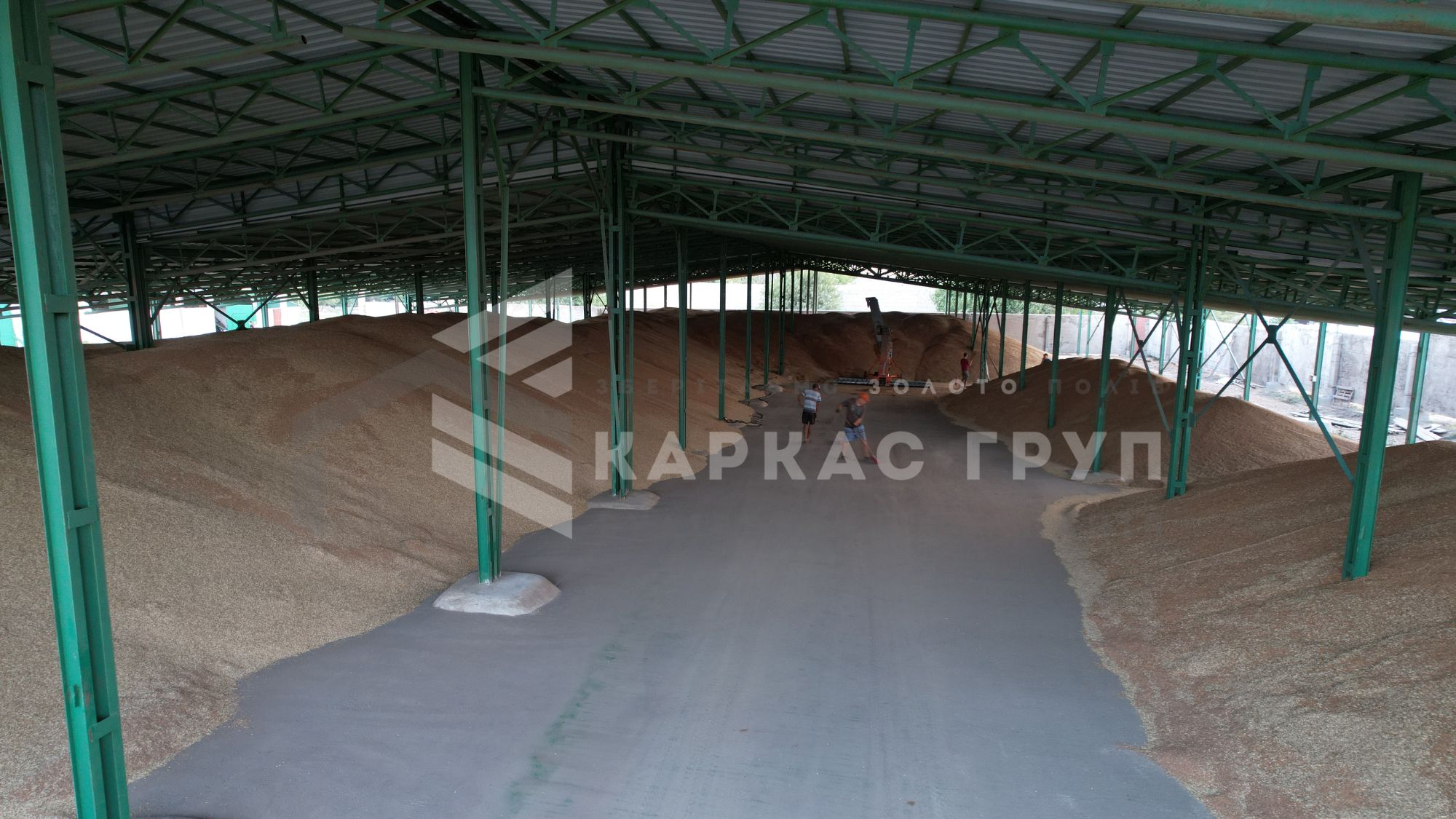Смонтирован навес для зерна. В хозяйстве используют маленькие зерновозы, поэтому заложена высота помещения в 6м. Навес позволяет хранить до 5000т пшеницы.