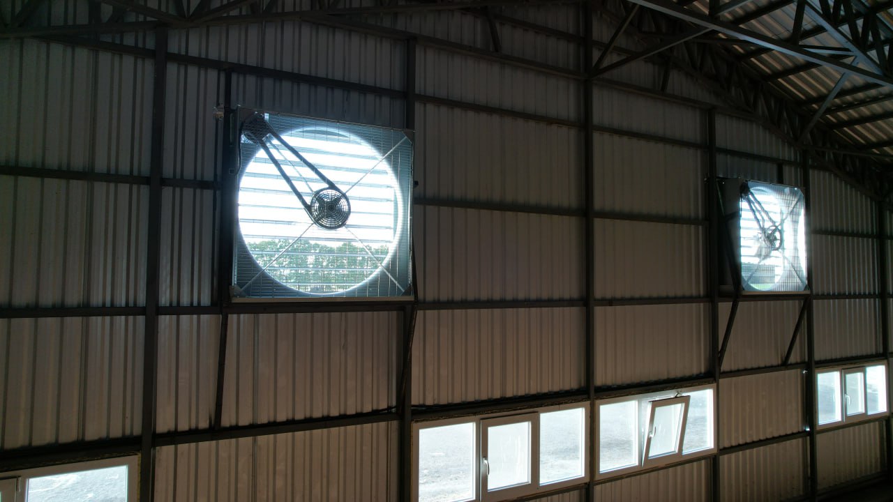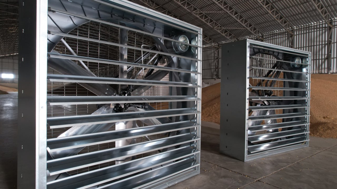 По этому проекту циркуляция и направление движения воздуха задается мощностью вытяжных вентиляторов, установленных во фронтонах складов.